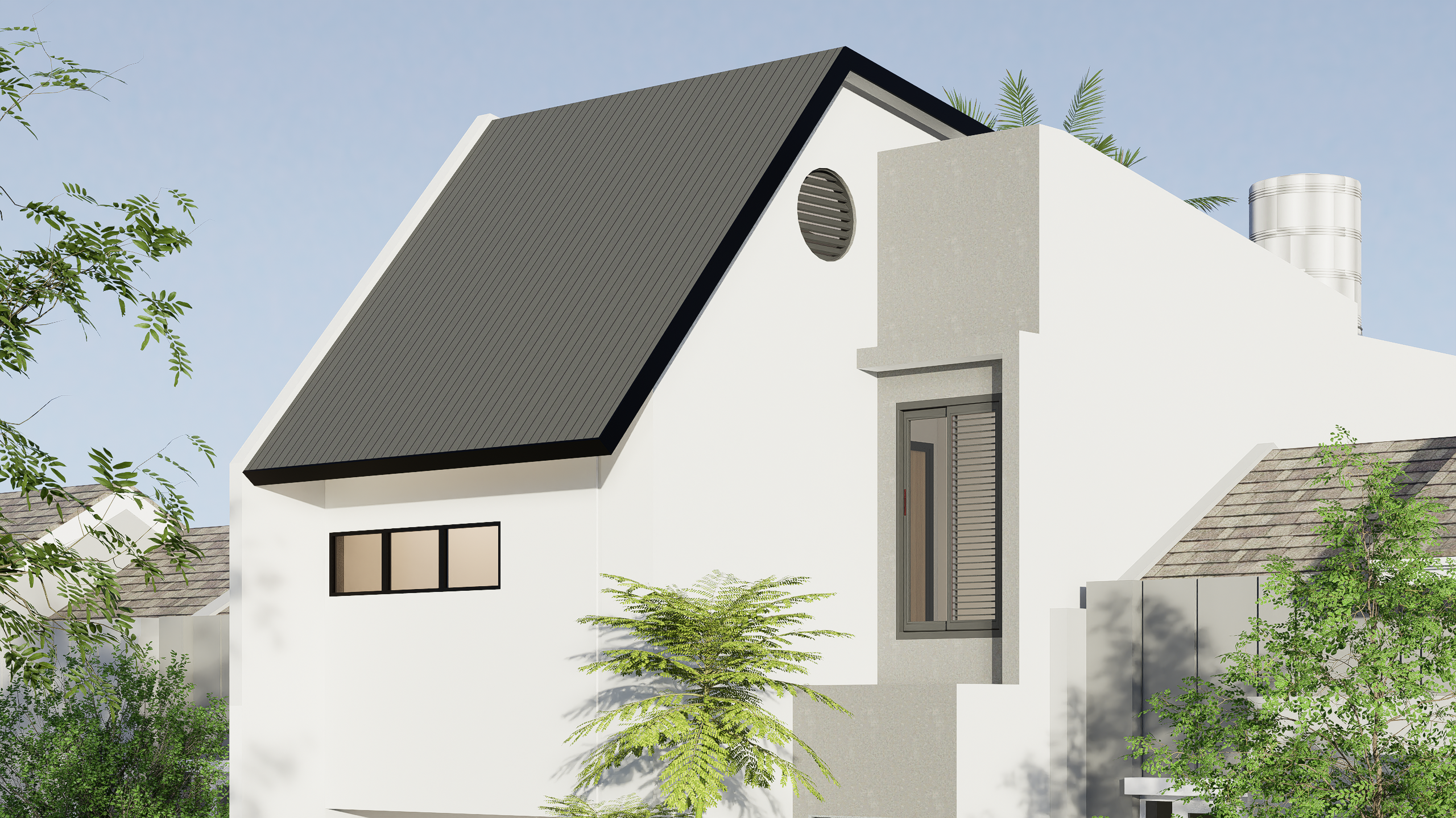 Atap rumah tropis idealnya memiliki bentuk miring dengan overstek lebar. Desain ini membantu air hujan cepat mengalir, sekaligus mengurangi panas yang diserap atap. Beddo Design Concept sering memadukan atap pelana dengan insulasi termal, sehingga ruangan di bawahnya tetap sejuk meski suhu luar cukup tinggi.
