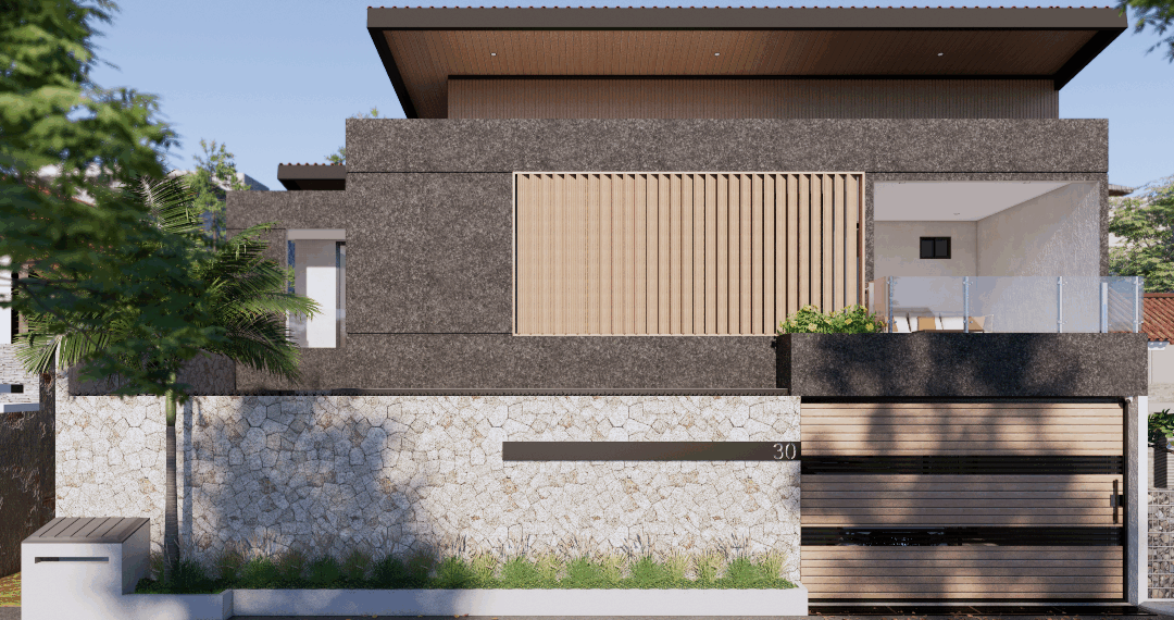 Untuk mengatasi panas, arsitek Beddo menerapkan desain fasad dengan secondary skin seperti kisi kayu, roster, atau panel metal berlubang. Elemen ini berfungsi menahan radiasi panas sekaligus mempercantik tampilan rumah. Di sisi lain, fasad seperti ini juga memperkuat karakter arsitektur tropis modern yang elegan dan bertekstur alami.